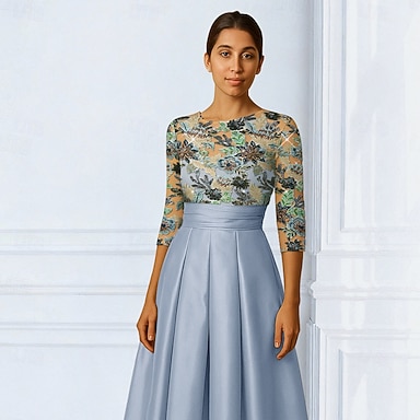 Ligne A Asymétrique Longueur cheville Robe de Soirée Robe de Cocktail Robe d'invité de mariage Robe de Mère de Mariée Manche 3/4 Col en V Élégant ancien Formel Jacquard avec Fleur