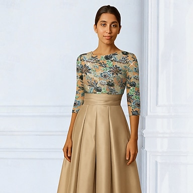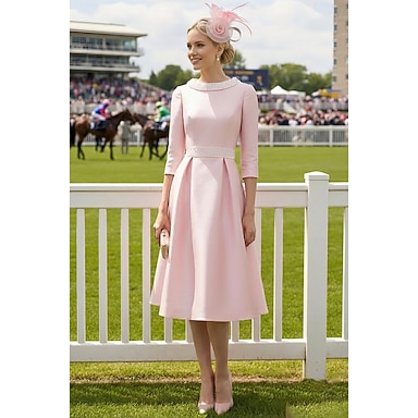 Ligne A Mi-long Robe de Soirée Robe de Cocktail Robe d'invité de mariage Robe de Mère de Mariée Demi Manches Bijoux Élégant robe demoiselle d honneur Fête de mariage Satin avec Perlage