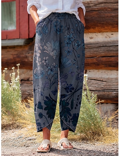 Femmes Slacks Droit Vacances Basique Occasionnel Longueur complète Naturel Fleuri Graphique Avec Poches Impression Conception à cordon élastique Confortable Confort Micro-Élastique Occasionnel