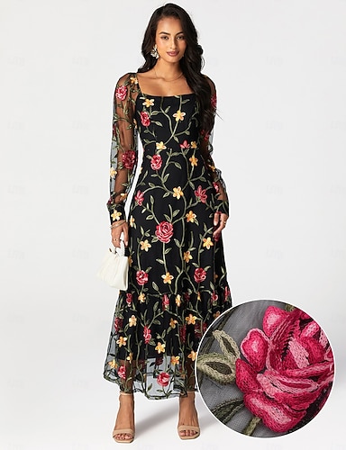 Ligne A Longueur au sol Broderie perlée Robe de Cérémonie Robe de la mère de la mariée Robe de Soirée Tenue de soirée Élégant ancien Scintillant manche longue Col ras du cou Mariage Formel Satin