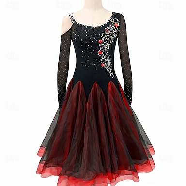 Danse de Salon Robe Cristaux / Stras Femme Utilisation Manches Longues Spandex Polyester