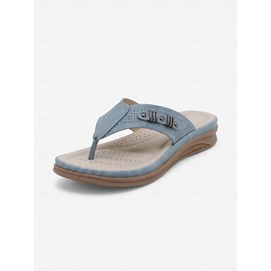 Tongs bleues pour femmes avec soutien de la voûte plantaire – sandales confortables et rembourrées, tongs d'été légères et respirantes avec détails métalliques élégants, idéales pour la plage et les