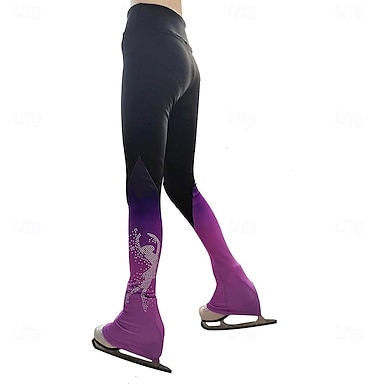 Pantalon de patinage artistique pour femmes et filles, noir, rose, bleu, extensible, pour l'entraînement et la compétition, chaud et thermique, orné de cristaux et de strass.