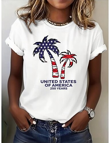 Jour de l'Indépendance Américaine Femmes T-shirt Imprimé Graphique Drapeau Lettre ancien Mode Élégant Manche Courte Col ras du cou Col rond Hauts Réguliers Occasionnel Quotidien Week-end Blanche