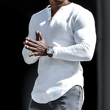 Homme Chemise Henley Shirt chemise fraîche Chemise à manches longues Plein Henley Plein Air Des sports manche longue Vêtement Tenue Design Décontractées Confortable