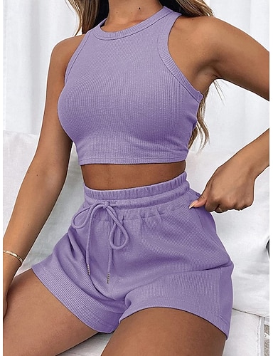 Femmes Ensembles de Shorts Sans manches Col ras du cou Couleur Unie Cordon de serrage Mode Streetwear Occasionnel Quotidien Extérieur Noir Blanche Vert Véronèse Été Coupe régulière
