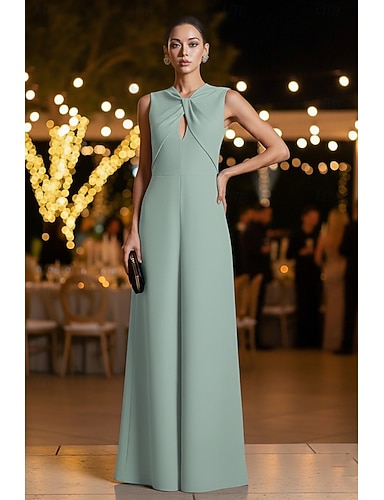 Combinaisons Longueur au sol Robe de Mère de Mariée Sans manches Col ras du cou Élégant Simple robe demoiselle d honneur Soirée Formelle Tissu Extensible avec Couleur Unie