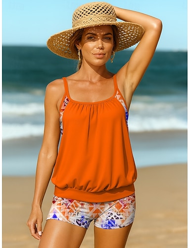 Tankini 2 pièces maillot de bain pour femmes culottes actives vacances graphique ombre col en U sans manches