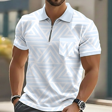 Homme Géométrique Polo Manche Courte Polos Revers Occasionnel Extérieur Fête Tenue quotidienne Avec Poches Impression 3D Printemps & Été Bleu Blanche Violet