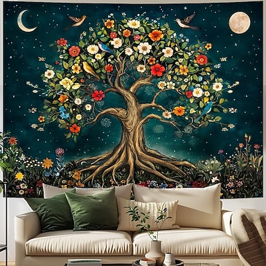 tapisserie Bannières Tentures Murales Fleur Arbre de la vie ancien Tropical Motifs 3D Soirée Outdoor Salon Dortoir Arrière-plans de prise de vue Cadeau Décoration d'intérieur