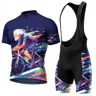 Homme Maillot de cyclisme Maillot et Cuissard Avec Bretelles Velo Cyclisme Manche Courte VTT Vélo tout terrain Cyclisme sur route Été Printemps Bleu Marine Dessin animé Géométrique Vélo Écran solaire