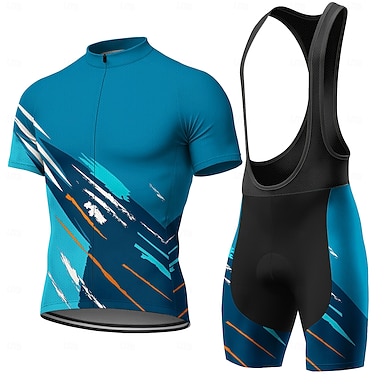 Homme Maillot de cyclisme Maillot et Cuissard Avec Bretelles Velo Cyclisme Manche Courte VTT Vélo tout terrain Cyclisme sur route Été Printemps Bleu Géométrique Vélo Écran solaire Résistant aux UV