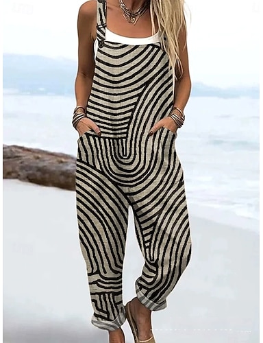 Femmes Salopette Actif Fleuri Sans manches Cordon de serrage avec poche Quotidien Vacances Coupe Ample bleu marine Bleu Roi Kaki Été