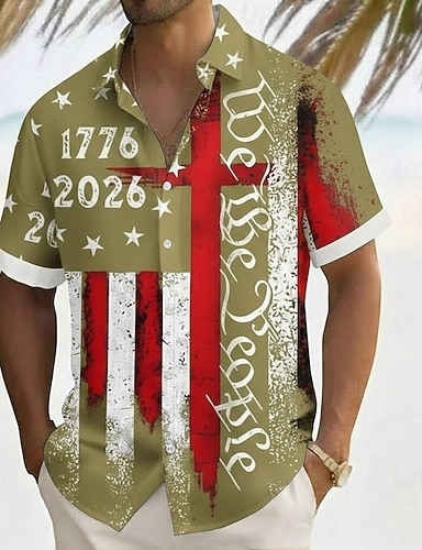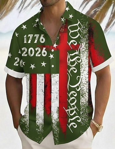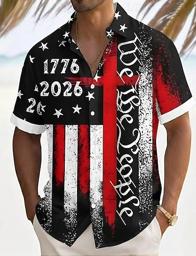 Homme 4 juillet, 250e anniversaire des États-Unis Drapeau américain Nous le peuple Chemise Chemise d'été Chemise Boutonnée Manche Courte Patriotique Extérieur Fête Été Printemps Col Rabattu