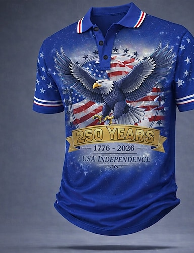 4 juillet 2026, 250e anniversaire Homme Drapeau Golf Polos de Sport Manche Courte Polos Chemises à Col Occasionnel Athleisure Tenue de fête Boutons Été Bleu Bleu 1 Bleu 2#
