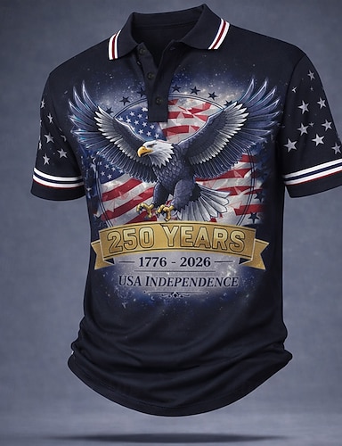 4 juillet 2026, 250e anniversaire Homme Drapeau Américain Golf Polos de Sport Manche Courte Polos Chemises à Col Occasionnel Athleisure Boutons Été Printemps Bleu Noir 3 Noir 1
