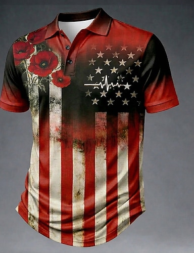 4 juillet 2026, 250e anniversaire Homme Fleuri Polo Manche Courte Polos Chemises à Col Occasionnel Athleisure Impression 3D Boutons Maille Respirante Été Printemps Bleu Blanc 1 Rouge