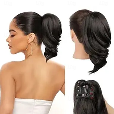Extension queue de cheval - 30 cm (12 pouces) à pince, cheveux synthétiques doux et ondulés naturels pour femmes - noir/brun 30 cm (12 pouces)