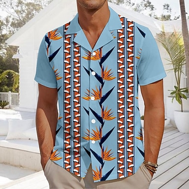 Homme Plantes Chemise de plage Chemise Aloha Manche Courte Hawaïen Plage Vacances Eté Printemps Collier cubain Boutonner Bleu