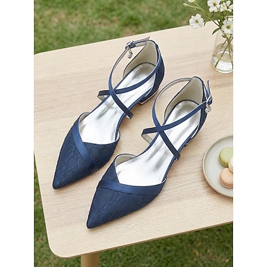 Chaussures plates bleu marine pour femme, bout pointu et brides croisées, élégantes chaussures pour la mère de la mariée lors d'un mariage en plein air, chaussures plates confortables pour