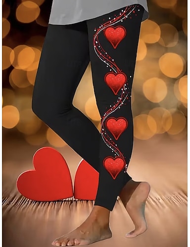 Femmes Leggings Vacances ancien Mode Longueur complète Taille haute Cœur Graphique Impression Chaleur Thermique Doux Respirant Élastique Quotidien Extérieur Vacances Violet Rouge Fuchsia Printemps