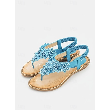 sandales à perles florales bohèmes pour femmes – tongs d'été décontractées à lanières élastiques avec un design embelli pour la plage ou les tenues décontractées
