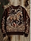 Femmes Pull ancien Quotidien Style Vintage Animal À capuche Imprimé manche longue Hauts Réguliers Tricoter Noël Nouvel An Beige Automne Hiver