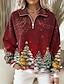 Femmes Sweatshirt Pull Graphique Arbre de Noël Occasionnel manche longue Demi-zip Hauts Réguliers Tenue Quotidienne Occasionnel Sports Vin Rouge Automne Hiver