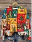 Femmes Pull ancien Quotidien Style Vintage Animal À capuche Imprimé manche longue Hauts Réguliers Tricoter Noël Nouvel An Vert Automne Hiver
