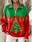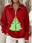 Femmes Sweatshirt Pull Graphique Arbre de Noël Occasionnel manche longue Demi-zip Hauts Réguliers Tenue Quotidienne Occasionnel Sports Vin Rouge Vert Automne Hiver