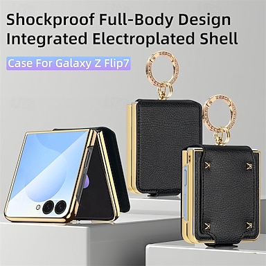 téléphone Coque Pour Samsung Galaxy Z Flip 7 Z Flip 7 FE Z Flip 6 Z Flip 5 Z Flip 4 Coque Arrière Coque à Rabat Boucle Anneau PC faux cuir