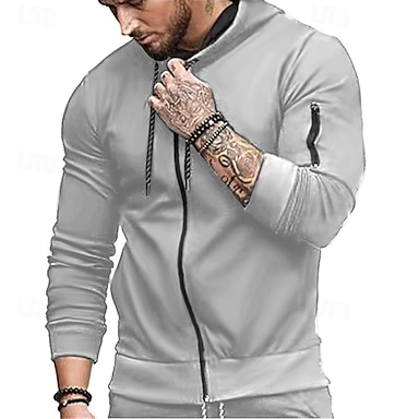 Homme Sweat à capuche Sweat à capuche zippé intégral Sweat à capuche en polaire Noir Gris Clair Gris foncé À capuche Uni Zip Up Poche Avant Sport & Loisir Occasionnel Quotidien Streetwear Frais