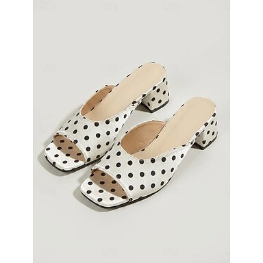 Sandales à pois pour femmes, à talons carrés – mules ouvertes, style rétro chic, idéales pour la plage, les vacances sur une île ou en station balnéaire. &vêtements d'été
