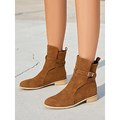 Bottines marron foncé pour femme – bottines plates classiques à boucle pour l'automne, le shopping et le quotidien