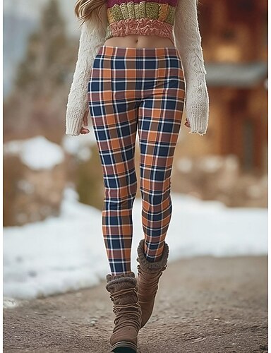 Femmes Pantalons Leggings Leggings confortables Streetwear Occasionnel Longueur complète Taille haute Plaid Taille Élastique Imprimé Respirabilité Confortable Élastique Vacances Rue Tenue quotidienne