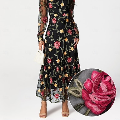 Ligne A Longueur au sol Robes de Bal Élégant ancien Fête manche longue Épaules Dénudées Soirée Fête de jardin Nylon avec Imprimé floral