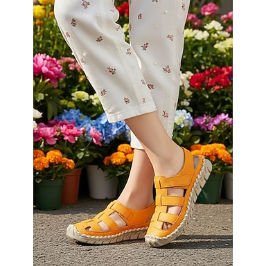 Sandales de pêcheur orange pour femmes, bout fermé - sandales de sport confortables cousues main, idéales pour la marche, les voyages, les journées de travail décontractées et le quotidien.