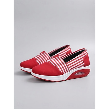 Baskets rayées rouges pour femmes, chaussures de marche décontractées en toile avec semelle à coussin d'air, idéales pour les voyages et le shopping. &confort quotidien