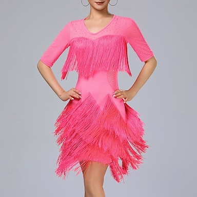 Danse Latine Robe Gland Couleur unie Épissage Femmes Performance Entraînement Demi Manches Haut Polyester
