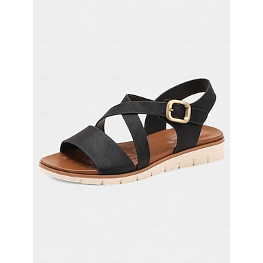 sandales plates à boucle et lanières pour femmes - sandales confortables à bout ouvert et à bandes croisées pour la marche et les voyages