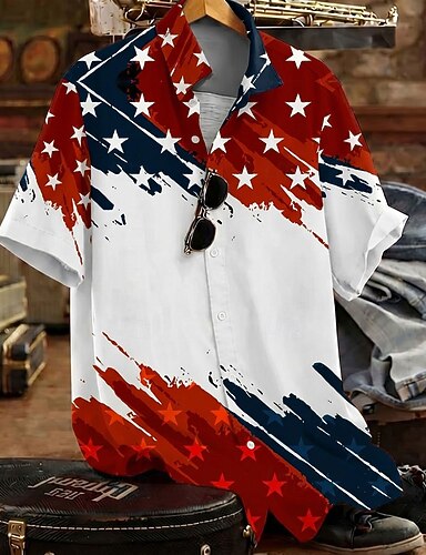Homme 4 juillet, 250e anniversaire des États-Unis Drapeau Américain 1776 Chemise Chemise d'été Chemise Boutonnée Manche Courte Patriotique Extérieur Fête Été Printemps Col Rabattu Impression 3D
