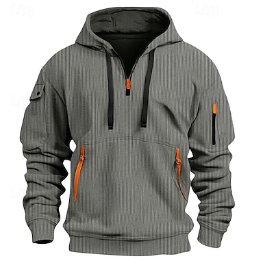 Homme Sweat à capuche Pull Sweat à capuche quart zippé Bleu Noir Blanche Rouge Kaki À capuche Uni Jacquard Avec Poches Texturé Quotidien Sport & Loisir Fête Streetwear Vêtements de sport Occasionnel