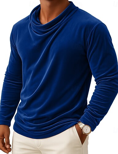 Homme T-shirt manche longue Col ras du cou Automne Automne & Hiver Toutes saisons Couleur Unie Traditionnel / Vintage Occasionnel Froncé Occasionnel Maison Extérieur Vin Noir Blanche T-shirt haut de