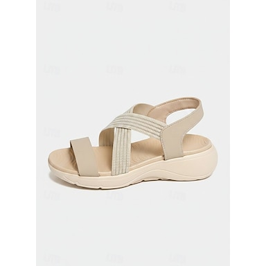 sandales de sport beiges pour femmes avec sangles élastiques et semelle coussinée pour une tenue décontractée d'été et un confort en extérieur