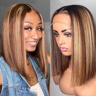 Perruque Cheveux Naturel humain 5x5 Fermeture dentelle frontale 13x4 Cheveux Brésiliens Lisse Multicolore Coupe dégradée Femmes Densité 150% 180% we say baby hair Cheveux Mèches / Balayage 100