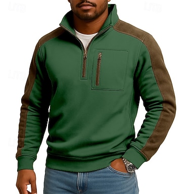 Homme Sweat-shirt Pull Sweat-shirt quart de fermeture éclair Noir Rouge Bordeaux Vert Kaki Col montant Uni Patchwork Avec Poches Bloc de Couleur Sport & Loisir Occasionnel Quotidien ancien Streetwear