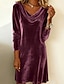 Robe midi en velours pour femmes robe en ligne élégante fête cocktail sortie en plein air invitée de mariage ajustement régulier couleur unie manches longues col en V noir vin bleu violet automne