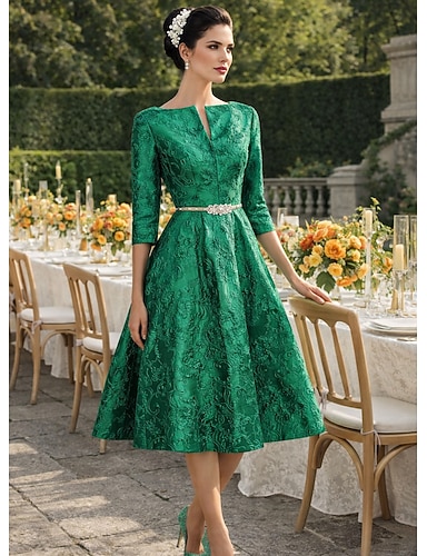 Ligne A Mi-long Robe de Cocktail Robe d'invité de mariage Robe de Derby Robe de Mère de Mariée Sans manches Manche 3/4 Col ras du cou Élégant ancien Formel Kentucky Derby Jacquard avec Imprimé