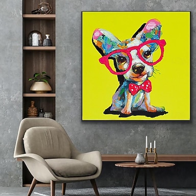 Peinture à l'huile faite à la main, décoration murale sur toile, dessin animé abstrait moderne, chiot animal mignon pour la décoration intérieure, peinture roulée sans cadre, non étirée