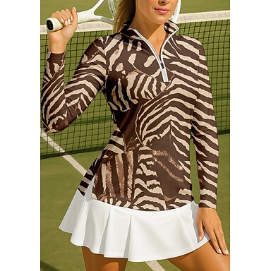 Femmes Animal Zébré T-shirt de sport T-shirt POLO Chemise de tennis T-shirt de tennis manche longue Fermeture éclair Floral UPF50+ Résistant aux UV Haute élasticité Évacuation de l'Humidité Respirant